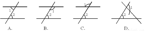 下列图中,∠1与∠2是同位角的是 ( )