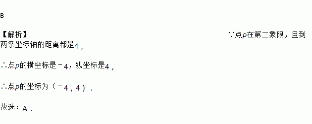 若点P在第二象限,且到两条坐标轴的距离都是4,则点P的坐标为( )