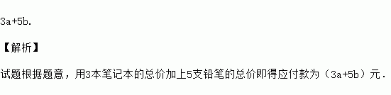 购买单价为元的笔记本3本和单价为元的铅笔5支应付款 元.