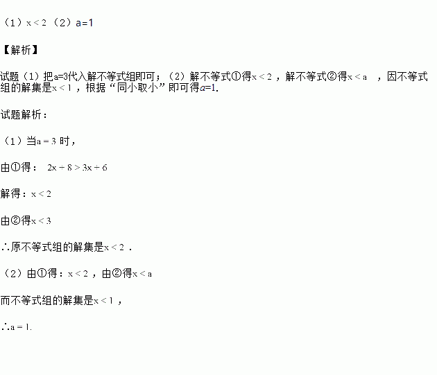 (2)若不等式组的解集是x<1,求a的值.