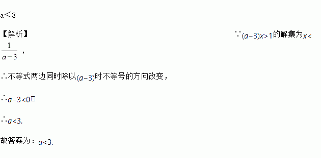 若不等式(a-3)x>1的解集为x<,则a的取值范围是_____.