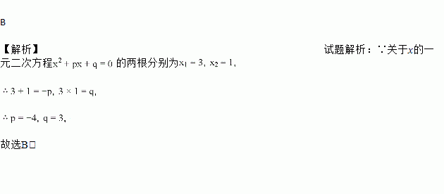 如果关于x的一元二次方程x2+px+q=0的两根分别为x1=3,x2=1,那么这个一元二次方程是( )