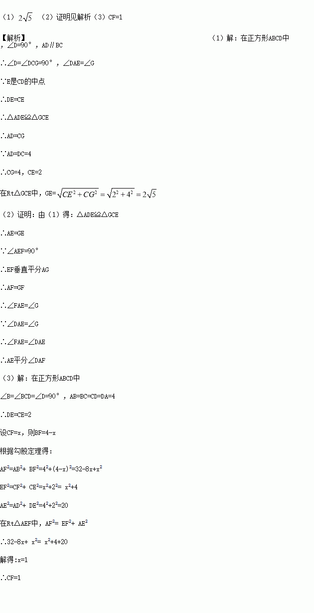 如图,在边长为4的正方形ABCD中,E是CD的中点,F是BC上的一点,且∠AEF=90°,延长AE交BC的延长线于点G.