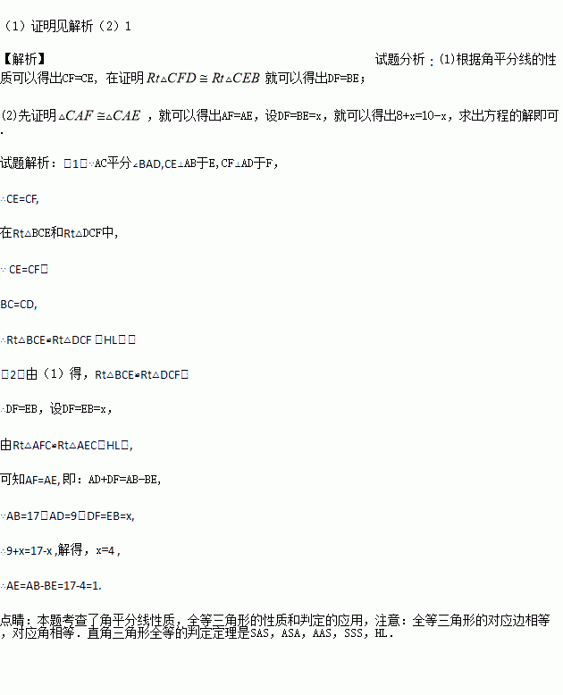 如图,已知AC平分∠BAD,CE⊥AB于E,CF⊥AD于F,且BC=CD.