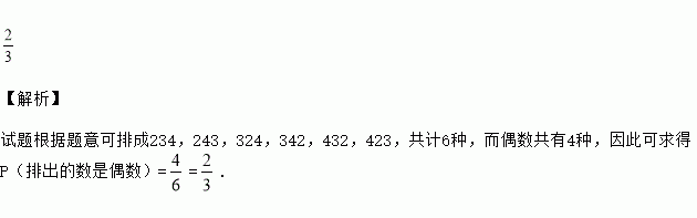 用2、3、4三个数字排成一个三位数,则排出的数是偶数的概率为 .