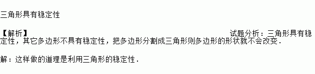 如图,为了使一扇旧木门不变形,木工师傅在木门的背后加钉了一根木条,这样做的道理是_____.