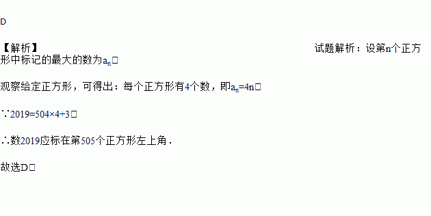 观察图中正方形四个顶点所标的数字规律,推测数2019应标在( )