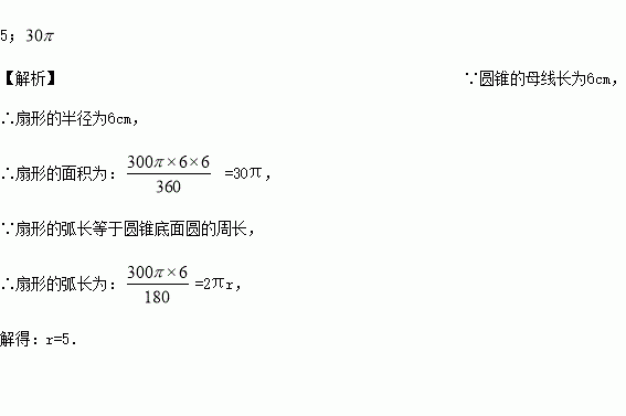 圆锥的母线长为6cm,侧面展开图是圆心角为300?的扇形,则圆锥底面半径 cm,侧面展开图的面积是 cm2.
