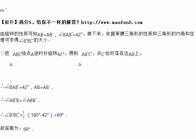 如图,把绕点逆时针旋转,得到,点恰好落在边上,连接,则的大小为________.