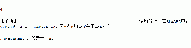 如图,是一个中心对称图形,A为对称中心,若∠C=90°,∠B=30°,AC=1,则BB′的长为 .