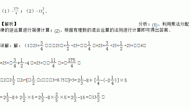 (1)25×﹣(﹣25)×+25÷(﹣);