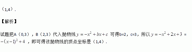 已知A(0,3),B(2,3)是抛物线上两点,该抛物线的顶点坐标是_________.