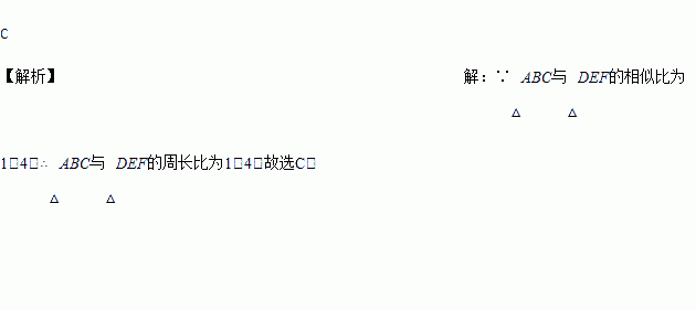 △ABC与△DEF的相似比为1:4,则△ABC与△DEF的周长比为( )