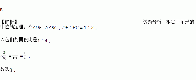 如图,DE是△ABC的中位线,表示△ADE的面积,表示四边形DBCE的面积,则=( )