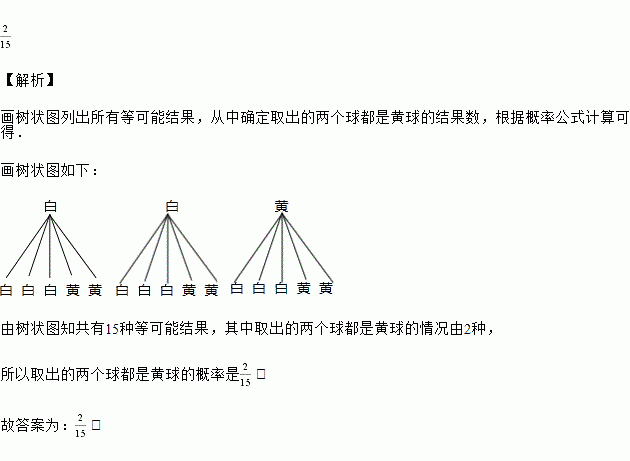 第一个盒子中有2个白球和1个黄球,第二个盒子中有3个白球和2个黄球,这些球除颜色外无其他差别,分别从每个盒子中随机抽取一个球,取出的两个球都是黄球的概率是______.