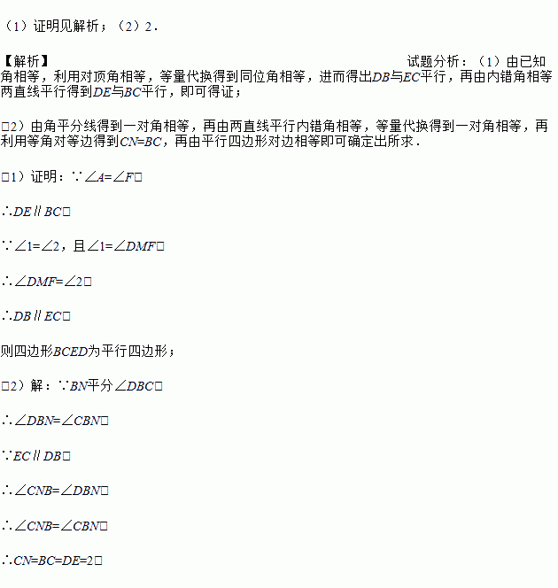 (2)已知DE=2,连接BN,若BN平分∠DBC,求CN的长.