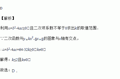 二次函数与的图象与x轴有交点,则k的取值范围是