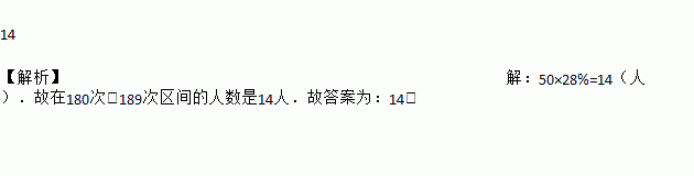 14 【解析】【解析】 50×28%=14(人).故在180次~189次区间的人数是14人.故答案为:14.