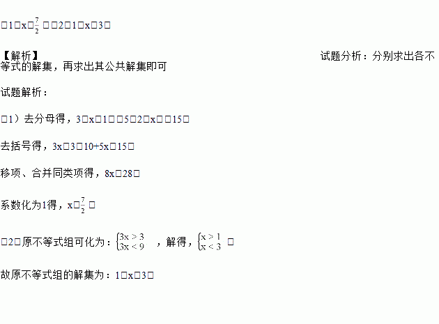 解下列不等式及不等式组: