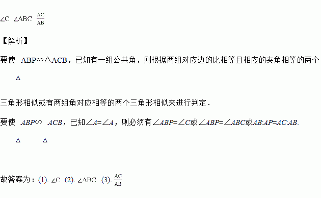 如图,在中,是上一点,连接.要使,则必须有________或________或________.