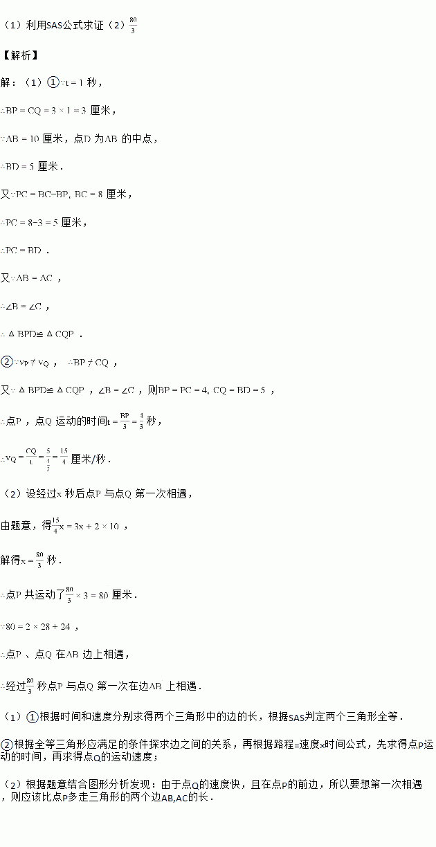(1)如果点P在线段BC上以3cm/s的速度由B点向C点运动,同时,点Q在线段CA上由C点向A点运动.