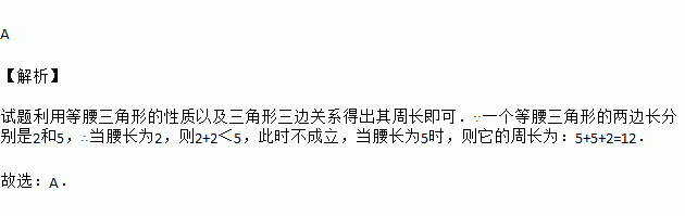 若一个等腰三角形的两边长分别是2和5,则它的周长为( )