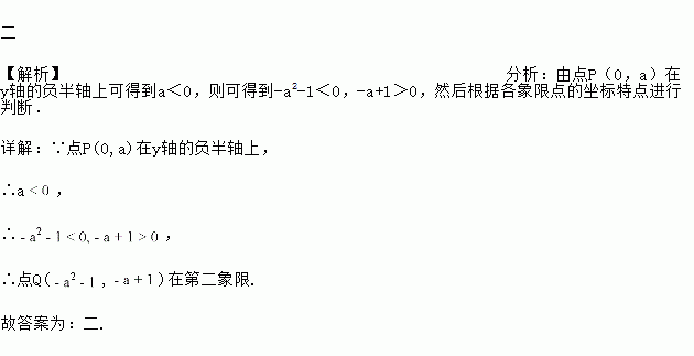 已知点 P(0,a)在 y 轴的负半轴上,则点 Q(-a2-1,-a+1)在第_______象限;