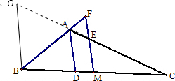 分析:(1)延长CA交FM的平行线BG于G点,利用平行线的性质得到BM=CM、CE=GE,从而证得CE=BF;