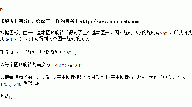 如图是由三把相同大小的扇子展开后组成的图形,若把每把扇子的展开图看着“基本图案”那么该图形是由“基本图案”( )