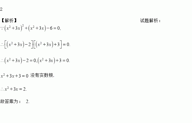 已知x为实数,且满足(x2+3x) 2+(x2+3x)-6=0,则x2+3x的值为___________.