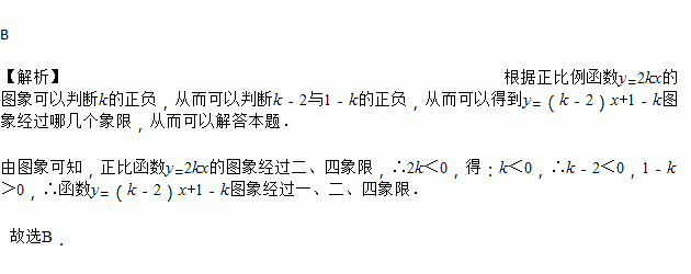 正比例函数y=2kx的图象如图所示,则y=(k-2)x+1-k的图象大致是( )