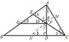 分析:(1)过F作FM⊥AC并延长MF交BC于N,判定四边形GBDF为平行四边形,进而证明△AMF≌△NDF,得出AE=BG;