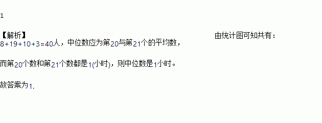 为响应“书香成都”建设的号召,在全校形成良好的人文阅读风尚,成都市某中学随机调查了部分学生平均每天的阅读时间,统计结果如图所示,则在本次调查中,阅读时间的中位数是________小时.