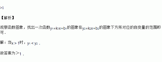 一次函数y1=k1x+b1与y2=k2x+b2 的图象如图所示,则当x ________________ 时,y1<y2.