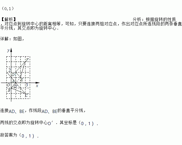 如图,△DEF是由△ABC绕着某点旋转得到的,则这点的坐标是_______.