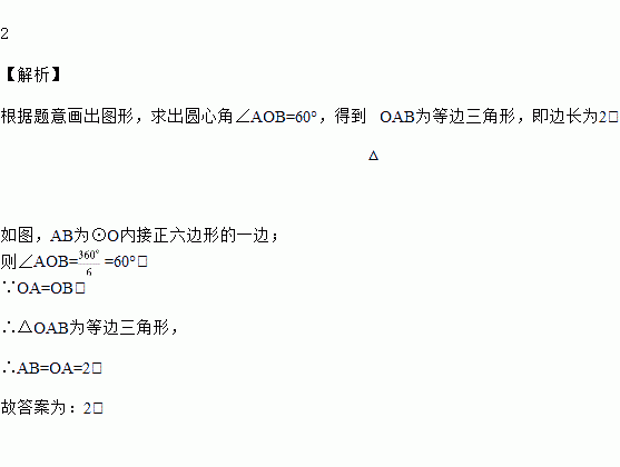 已知正六边形的半径为2,那么这个正六边形的边长为______.
