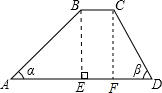 分析:首先过点C作CF⊥AD于点F,易得四边形BCFE是矩形,即可求得EF与CF的长,又由坡角α为45°,坡角β为63°,利用三角函数的知识即可求得AE与DF的长.