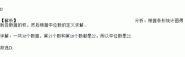 某市6月份日平均气温统计如图所示,那么在日平均气温这组数据中,中位数是( )