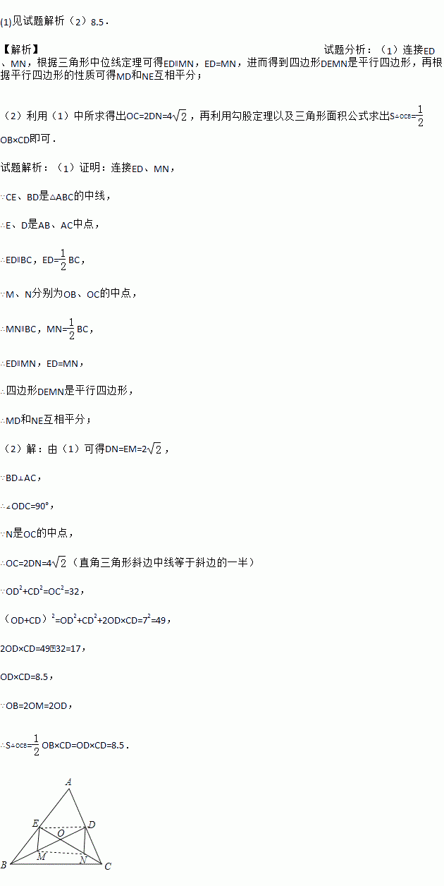 如图,已知△ABC的中线BD、CE相交于点O、M、N分别为OB、OC的中点.