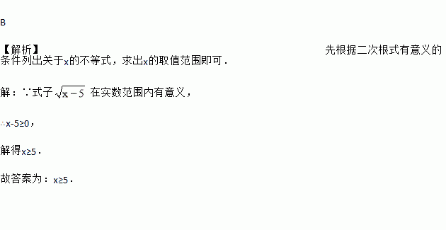 A. x>5 B. x≥5 C. x≠5 D. x≥0