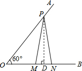 分析 首先过点P作PD⊥OB于点D,利用直角三角形中30°所对边等于斜边的一半得出DO的长,再利用等腰三角形的性质求出OM的长.