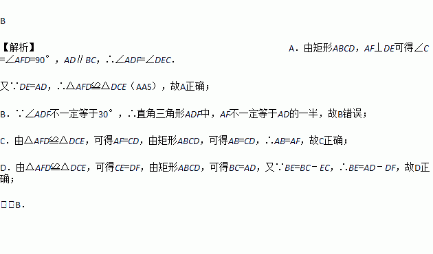 如图,在矩形ABCD中(AD>AB),点E是BC上一点,且DE=DA,AF⊥DE,垂足为点F,在下列结论中,不一定正确的是( )