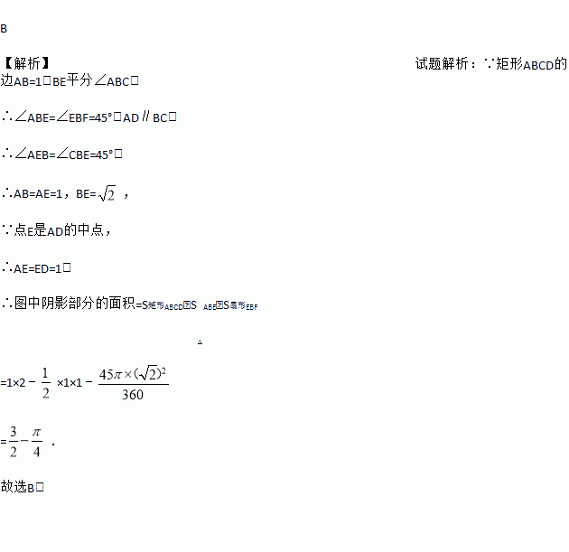 如图,矩形ABCD的边AB=1,BE平分∠ABC,交AD于点E,若点E是AD的中点,以点B为圆心,BE长为半径画弧,交BC于点F,则图中阴影部分的面积是( )