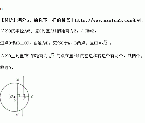 已知⊙O的半径为5,直线l与⊙O相交,点O到直线l的距离为3,则⊙O上到直线l的距离为的点共有( )