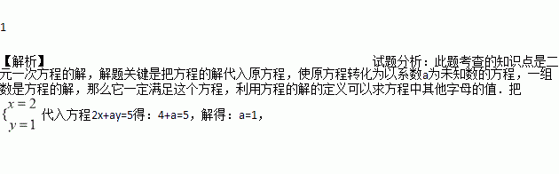 是方程2x+ay=5的解,则a= .