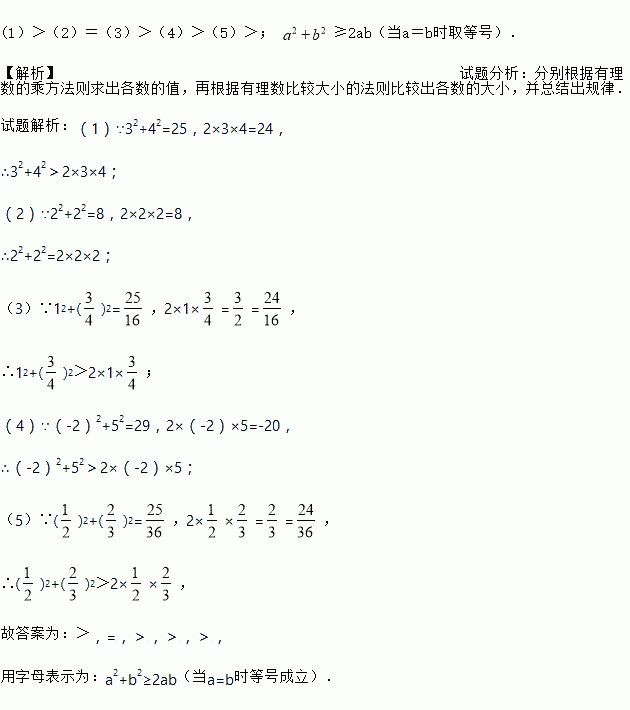 ⑴32+42 2×3×4;⑵22+22 2×2×2;⑶12+