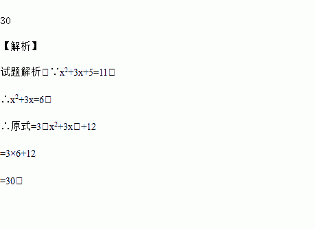已知x2+3x+5的值为11,则代数式3x2+9x+12的值为_________