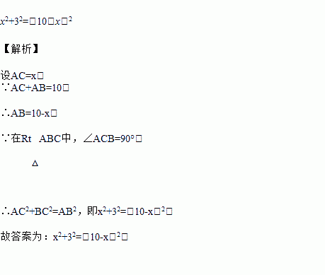 《九章算术》是我国古代最重要的数学著作之一,在“勾股”章中记载了一道“折竹抵地”问题:“今有竹高一丈,末折抵地,去本三尺,问折者高几何?”翻译成数学问题是:如图所示,△ABC中,∠ACB=90°,AC+AB=10,BC=3,求AC的长.如果设AC=x,可列出的方程为________________.