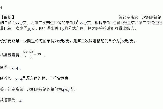 倍,购进数量比第一次少了30支.则该商店第一次购进的铅笔,每支的进价是_____元.