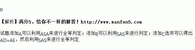A. ∠B=∠C B. AD=AE C. BD=CE D. BE=CD